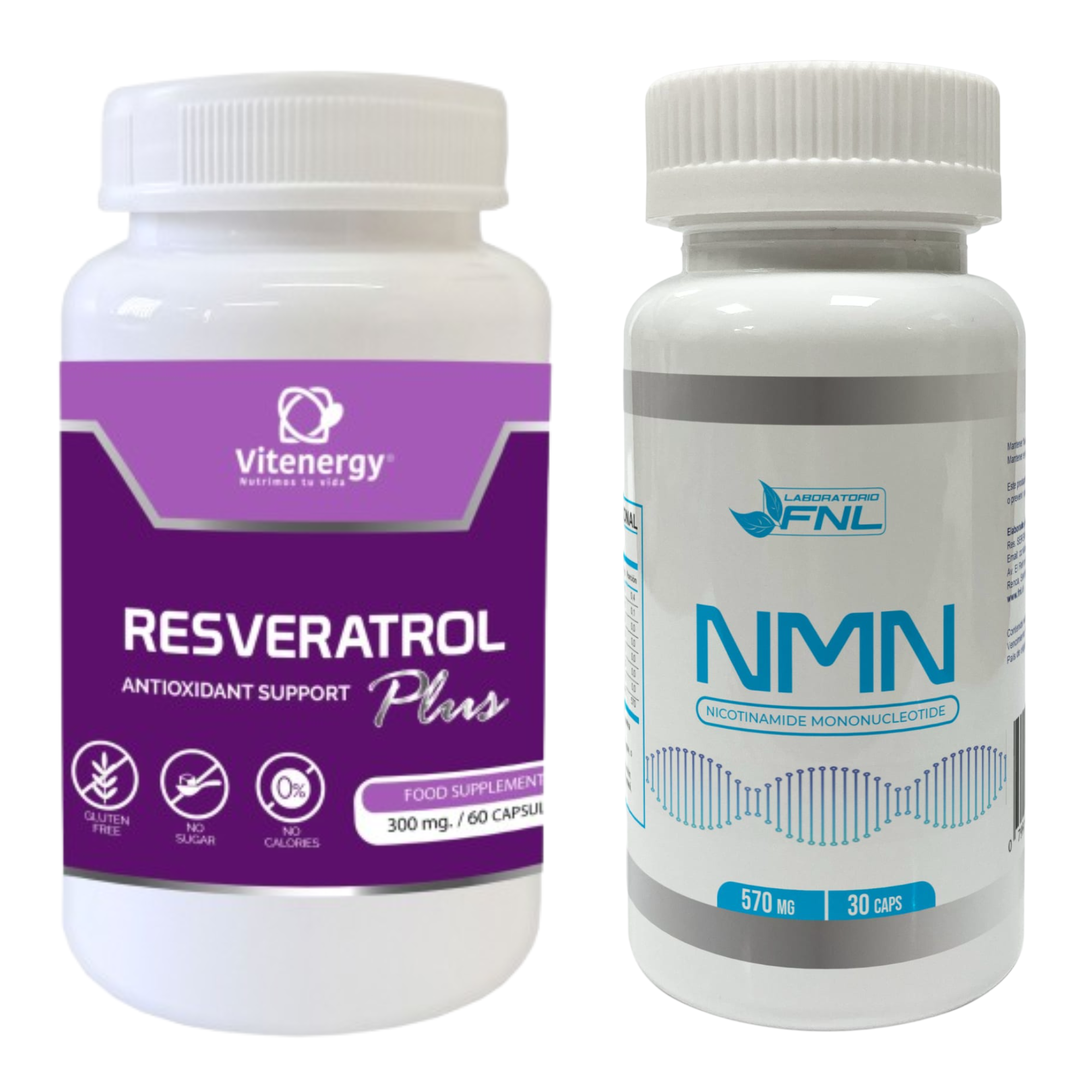 Resveratrol + NMN Nicotinamida Precursor NAD 570mg FNL es un suplemento en cápsulas diseñado para quienes buscan un apoyo natural en su bienestar celular. Su fórmula combina dos compuestos reconocidos por su potencial efecto antioxidante y de protección contra el estrés oxidativo.
